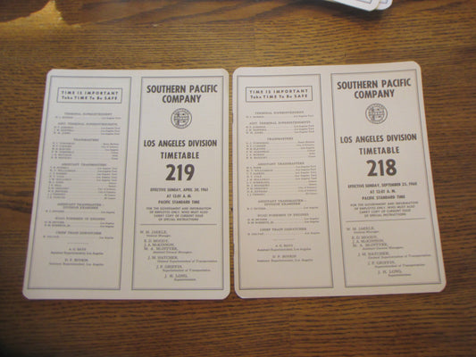 4 Southern Pacific Timetables #216,217,218,219