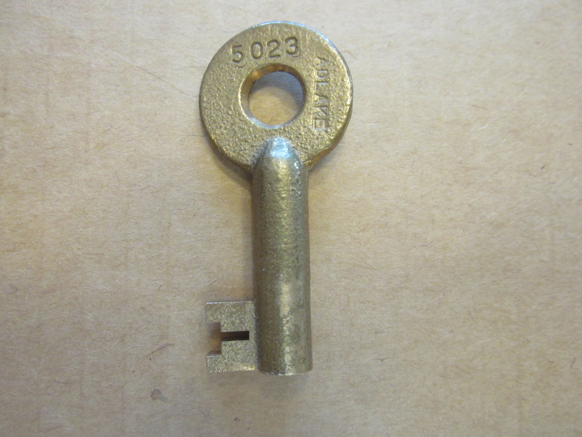 Showing little to no pocket wear key is deeply stamped C&WI for the Chicago & Western Indiana railroad. Back side has the small Adlake and serial number 5023.